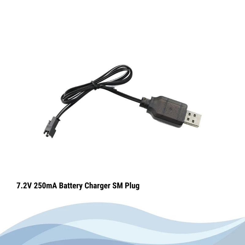 7.2V 250mA Battery Charger SM Plug compatible with all 7.2v NiCD NiMH rechargeable battery pack with SM Plug. With USB input easy to charge with your available devices including PC, Power Bank, Smartphone Charger. Easy to carry, Useful. Durable construction. Scope of application: Suitable for industrial production, car charging line connection.