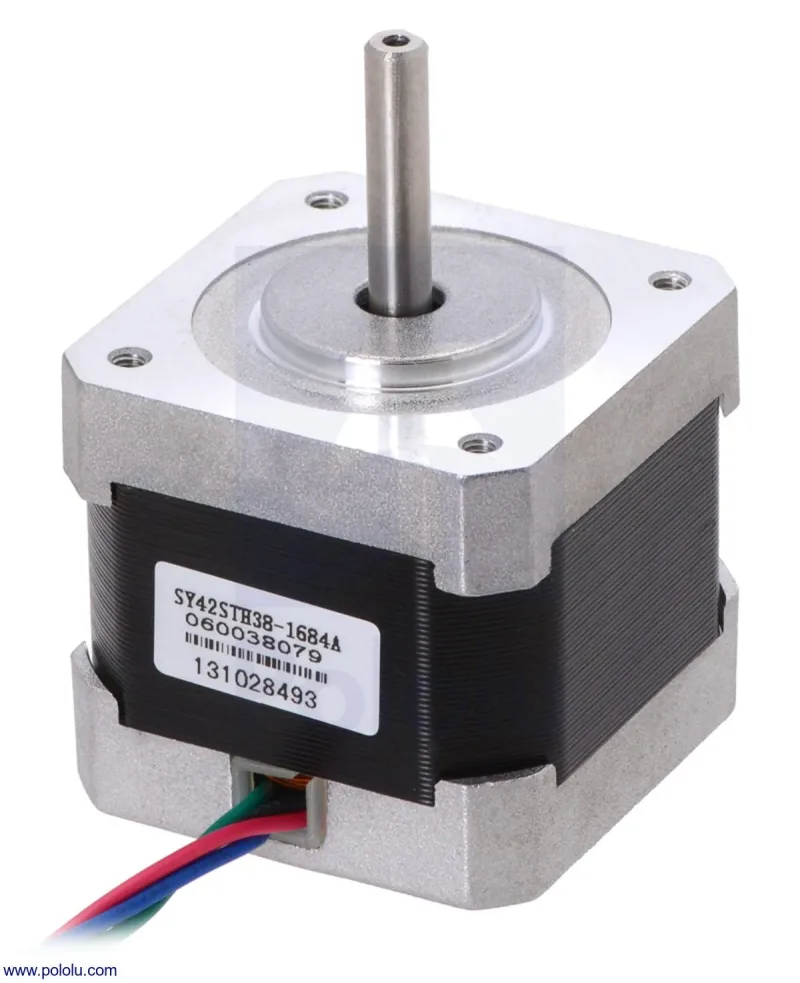 This hybrid Stepper Motor Nema 17 Bipolar, 1.7A, has a 1.8° step angle (200 steps per revolution). Each phase draws 1.7 A at 2.8 V, allowing for a holding torque of 3.7 kg/cm (51 oz/in).