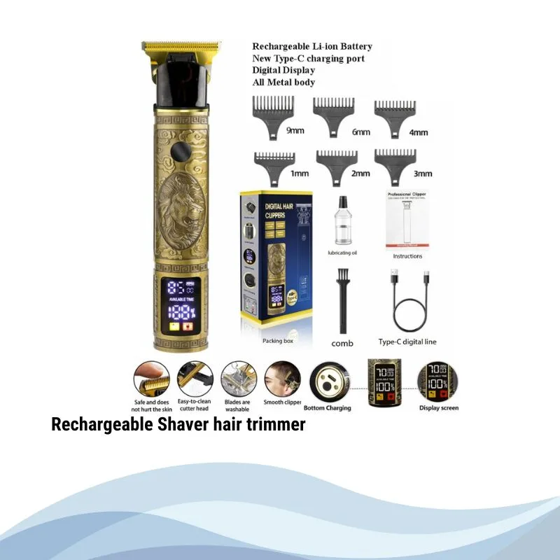 HQ Metal body type C Professional LCD Rechargeable Shaver hair trimmer YYT-076 d. Premium METAL BODY trimmer with bold designed shape.